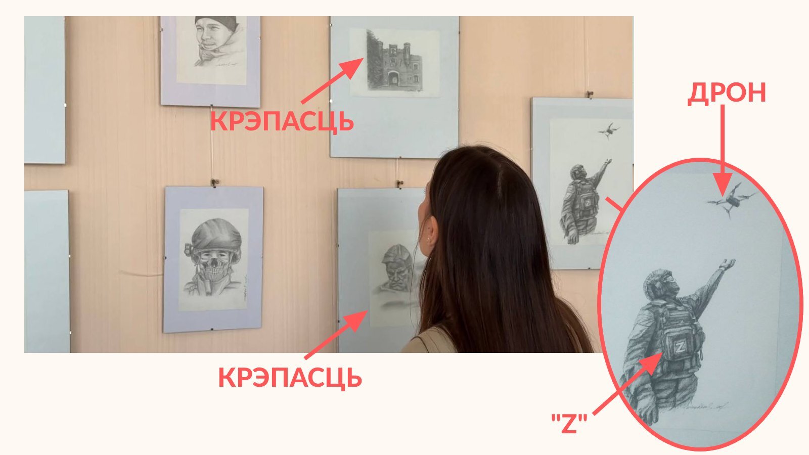 Ёсць сярод малюнкаў і тыя, дзе нельга ідэнтыфікаваць асобу — але і яны красамоўныя. Напрыклад, выявы салдата, ў якога спераду на форме велізарная літара «Z»:
