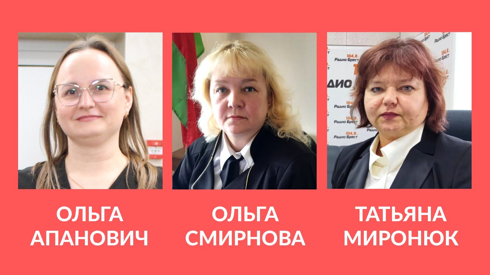 Так, в отставку отправлены Ольга Смирнова (исполняла роль судьи в Малорите), Ольга Апанович (Барановичи) и Татьяна Миронюк (Брестоблсуд).